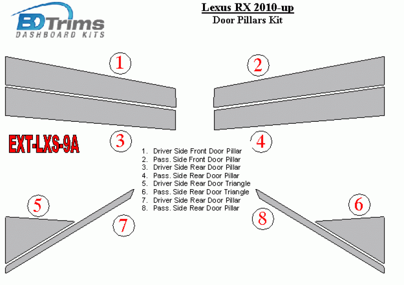 Lexus RX 2010-UP Exterior Door Window Pillar Post Cover Trim