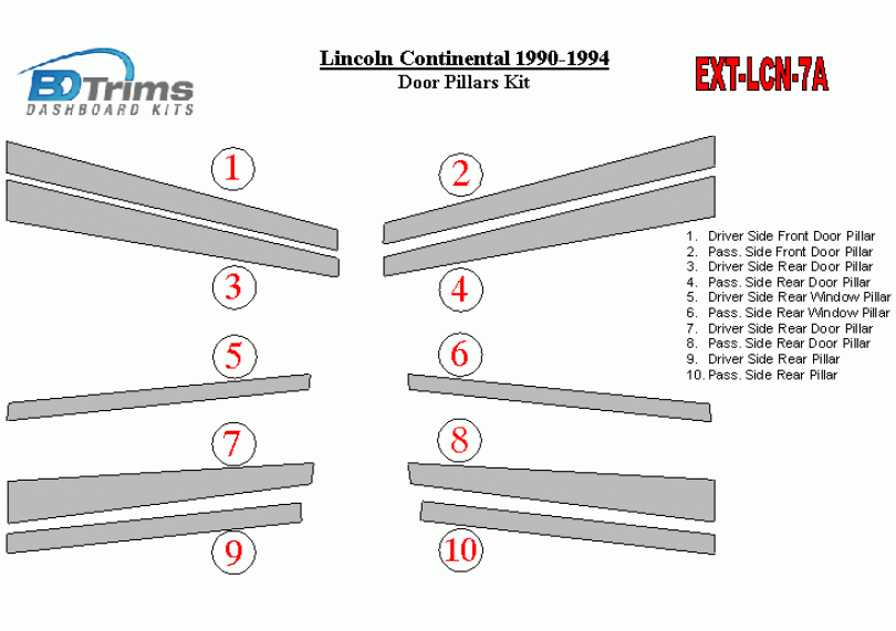 Lincoln Continental 1990-1994 Exterior Door Window Pillar Post Cover Trim