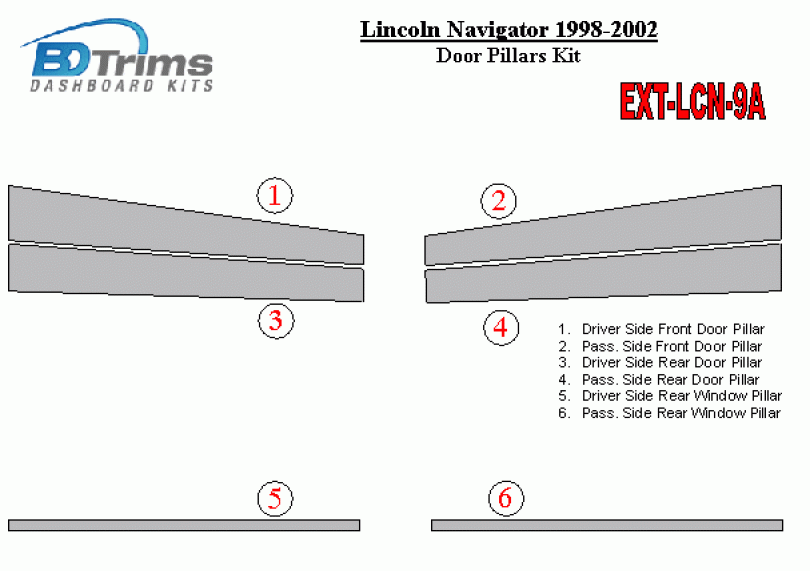 Lincoln Navigator 1998-2002 Exterior Door Window Pillar Post Cover Trim