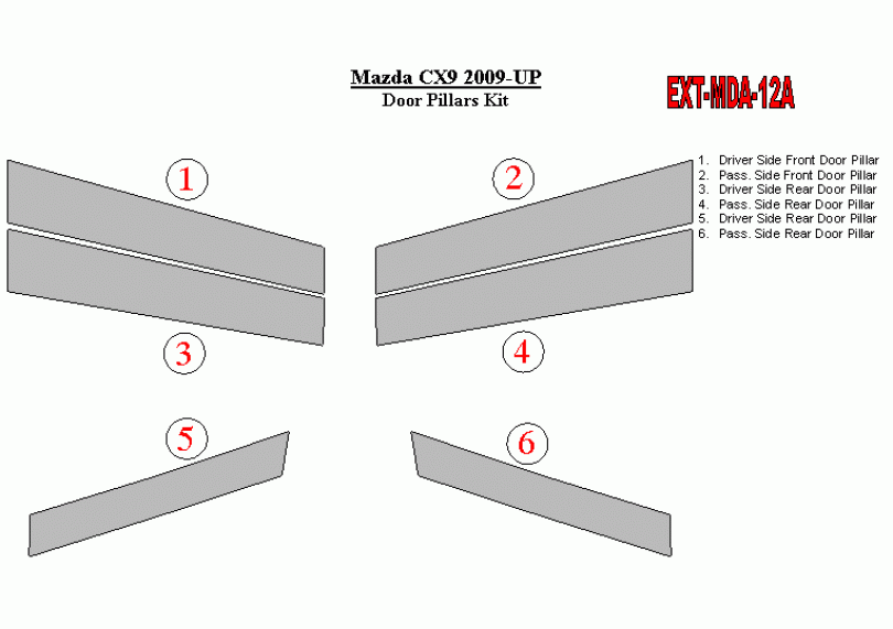 Mazda CX9 2009-UP Exterior Door Window Pillar Post Cover Trim