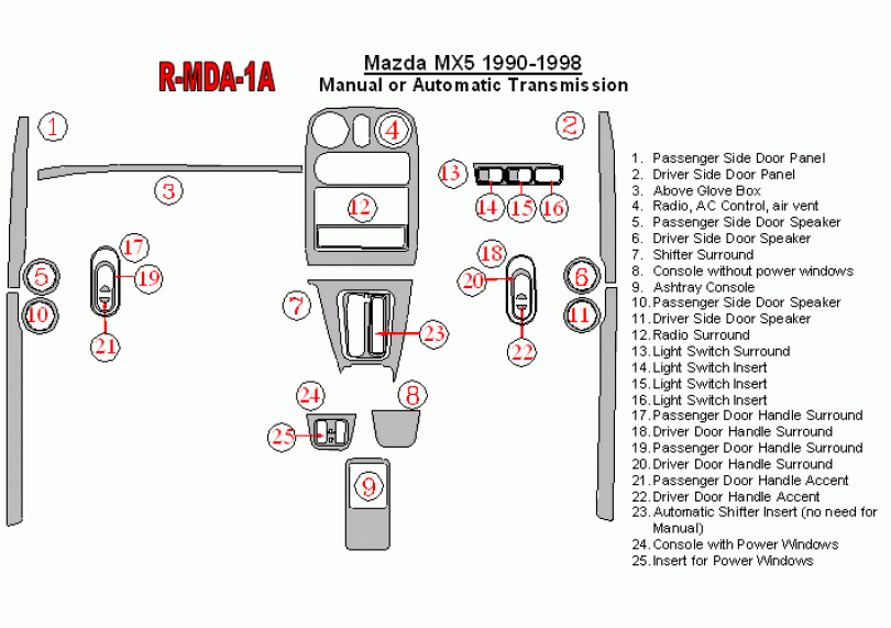 Mazda MX5 1990-1998 Dash Trim Kit (RHD)