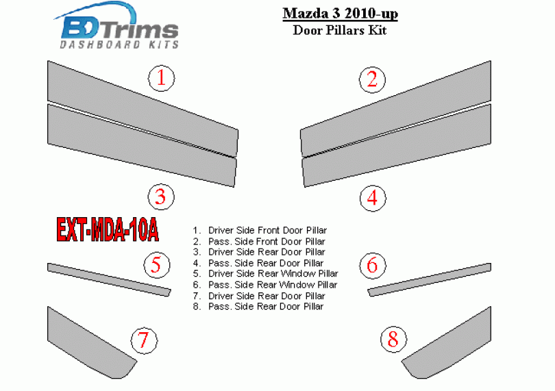 Mazda Mazda3 2010-UP Exterior Door Window Pillar Post Cover Trim