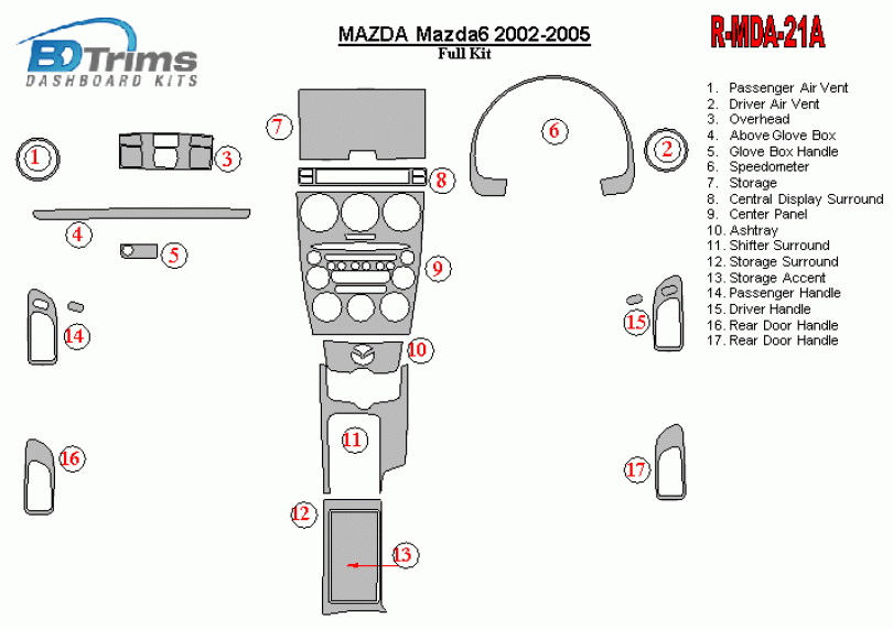 Mazda Mazda6 2002-2005 Dash Trim Kit (RHD)