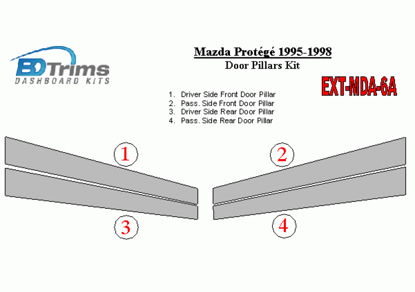 Mazda Protege 1995-1998 Exterior Door Window Pillar Post Cover Trim