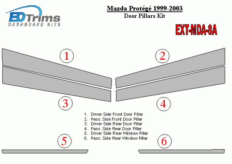 Mazda Protege 1999-2003 Exterior Door Window Pillar Post Cover Trim