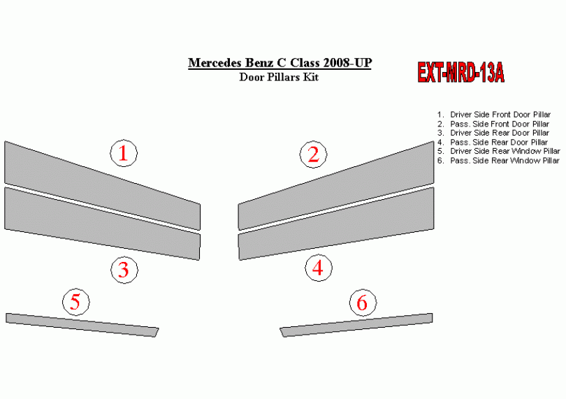 Mercedes Benz C Class 2008-UP Exterior Door Window Pillar Post Cover Trim
