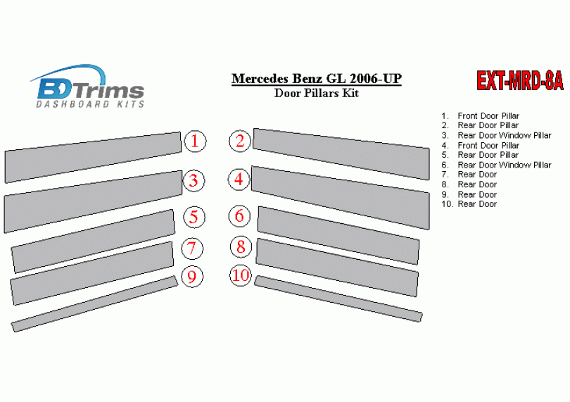 Mercedes Benz GL Class 2006-UP Exterior Door Window Pillar Post Cover Trim