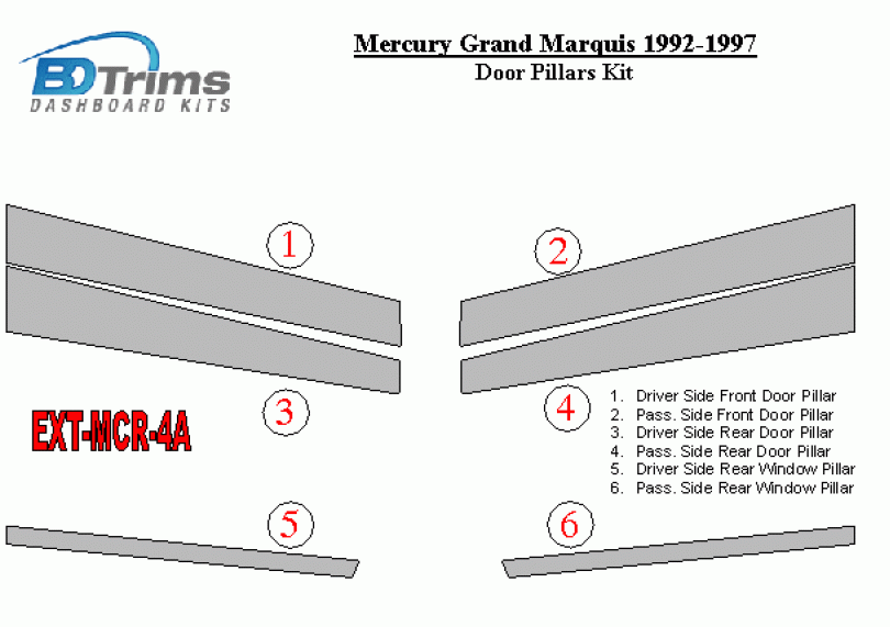 Mercury Grand Marquis 1992-1997 Exterior Door Window Pillar Post Cover Trim