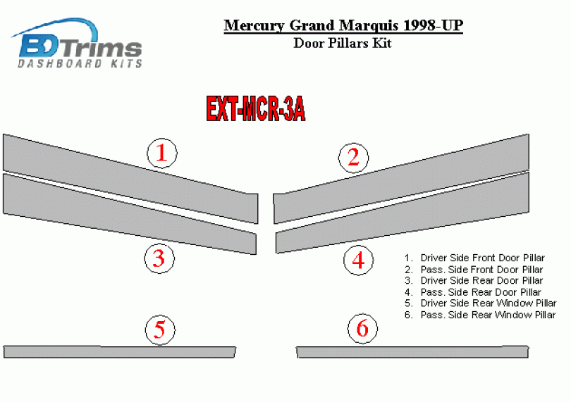 Mercury Grand Marquis 1998-UP Exterior Door Window Pillar Post Cover Trim