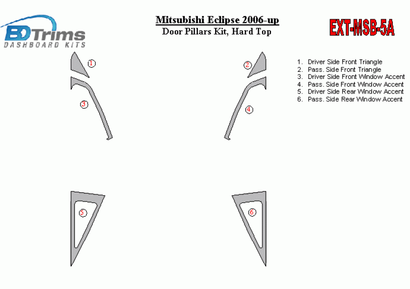 Mitsubishi Eclipse 2006-UP Exterior Door Window Pillar Post Cover Trim