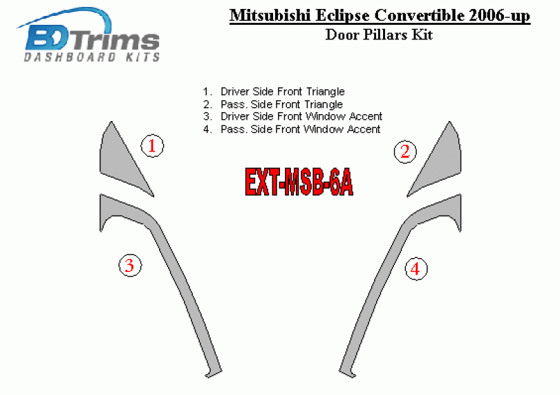 Mitsubishi Eclipse 2006-UP Exterior Door Window Pillar Post Cover Trim