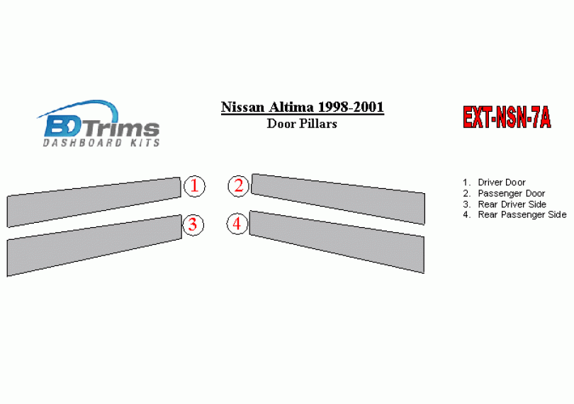 Nissan Altima 1998-2001 Exterior Door Window Pillar Post Cover Trim