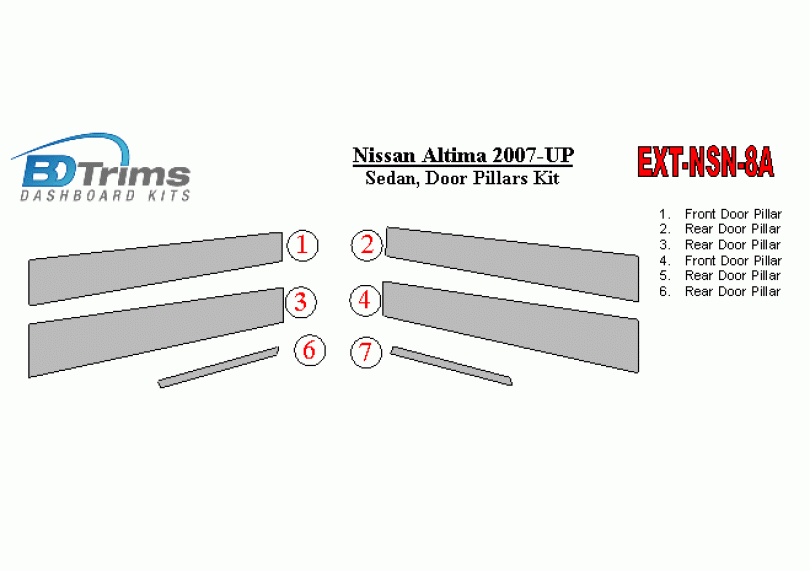 Nissan Altima 2007-UP Exterior Door Window Pillar Post Cover Trim