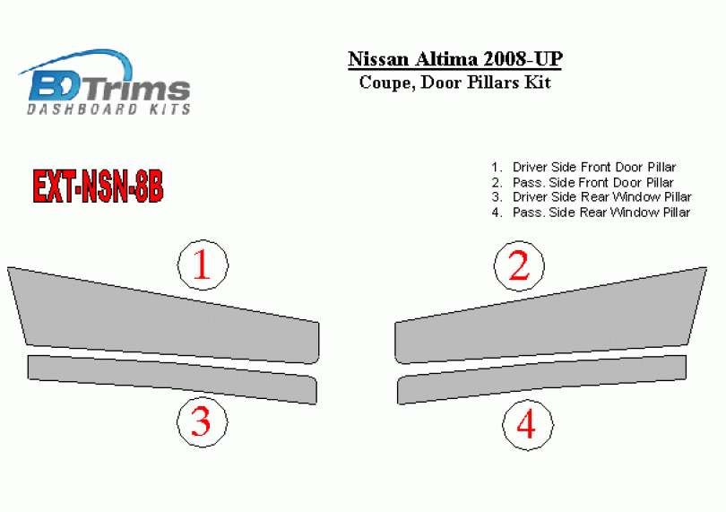Nissan Altima 2008-UP Exterior Door Window Pillar Post Cover Trim