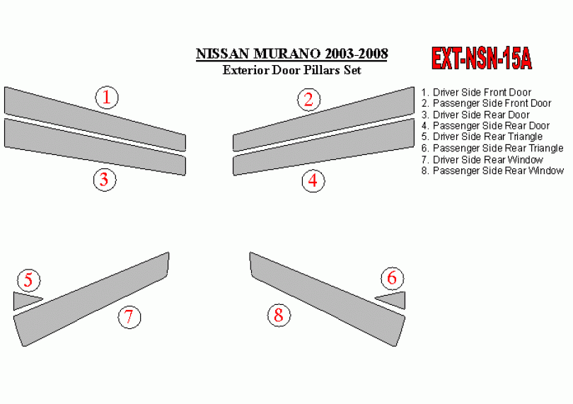 Nissan Murano 2003-2008 Exterior Door Window Pillar Post Cover Trim
