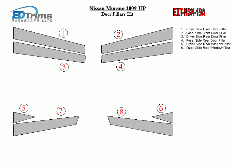 Nissan Murano 2009-UP Exterior Door Window Pillar Post Cover Trim