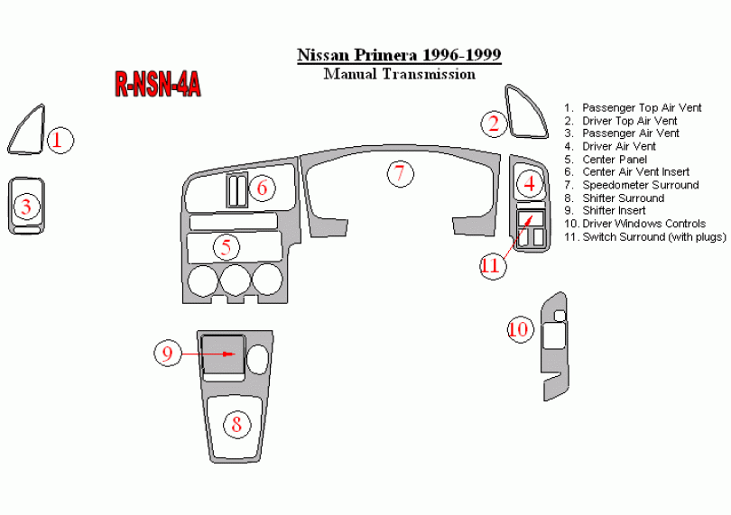 Nissan Primera 1996-1999 Dash Trim Kit (RHD)