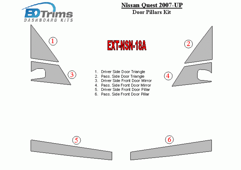 Nissan Quest 2007-UP Exterior Door Window Pillar Post Cover Trim
