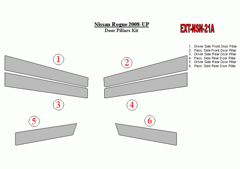 Nissan Roque 2008-UP Exterior Door Window Pillar Post Cover Trim