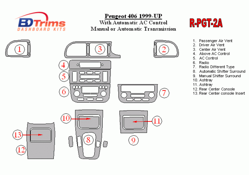 Peugeot 406 1999-UP Dash Trim Kit (RHD)