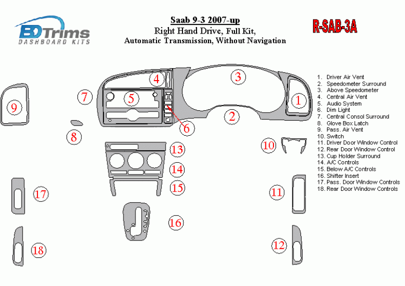 Saab 9-3 2007-UP Dash Trim Kit (RHD)