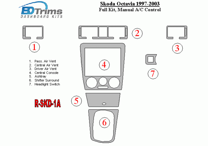 Scoda Octavia 1997-2003 Dash Trim Kit (RHD)
