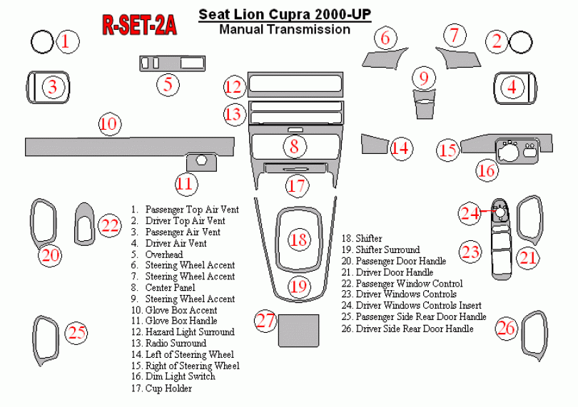 Seat Lion Cupra 2000-UP Dash Trim Kit (RHD)