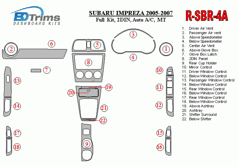 Subaru Impreza WRX 2005-2007 Dash Trim Kit (RHD)