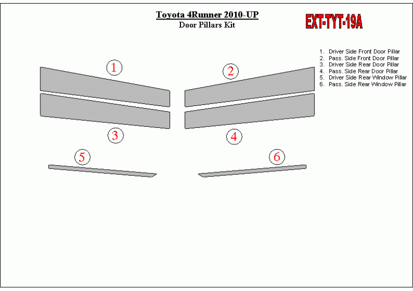 Toyota 4 Runner 2010-UP Exterior Door Window Pillar Post Cover Trim