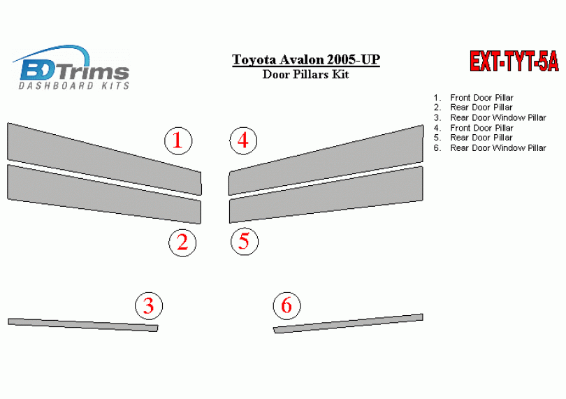 Toyota Avalon 2005-UP Exterior Door Window Pillar Post Cover Trim