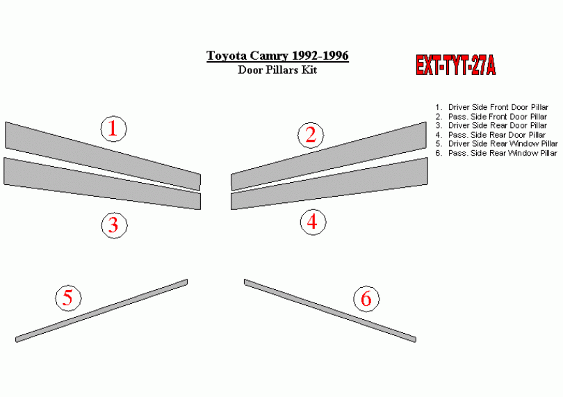 Toyota Camry 1992-1996 Exterior Door Window Pillar Post Cover Trim
