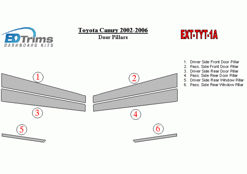 Toyota Camry 2002-2006 Exterior Door Window Pillar Post Cover Trim