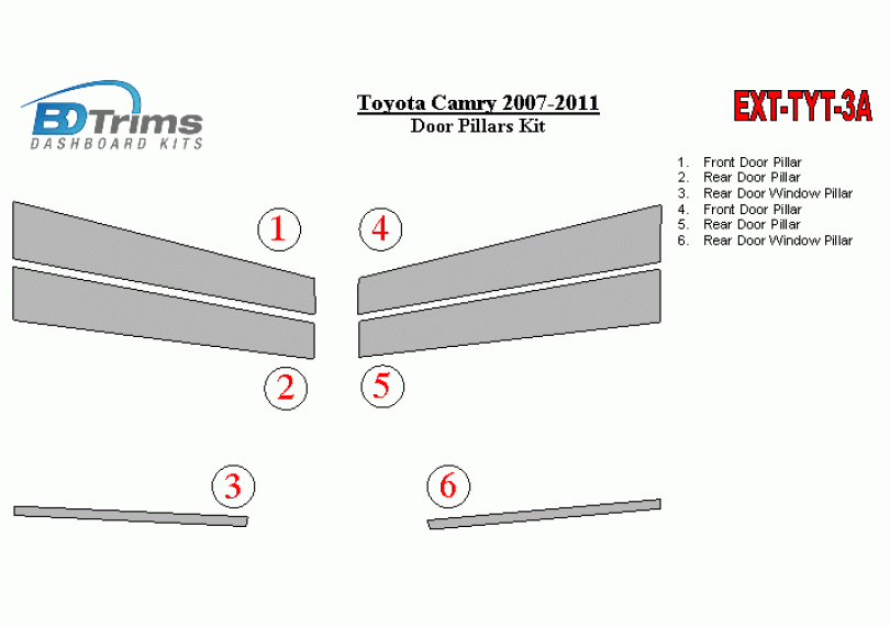 Toyota Camry 2007-2011 Exterior Door Window Pillar Post Cover Trim