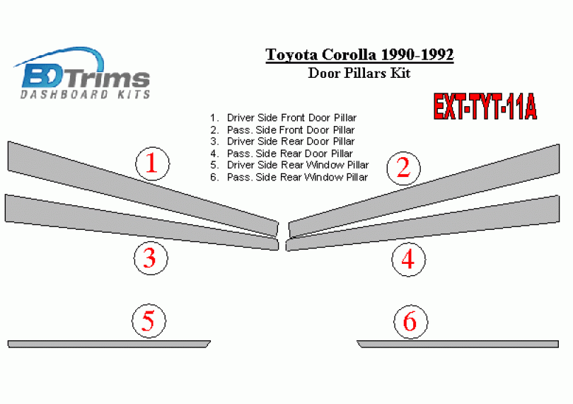 Toyota Corolla 1990-1992 Exterior Door Window Pillar Post Cover Trim