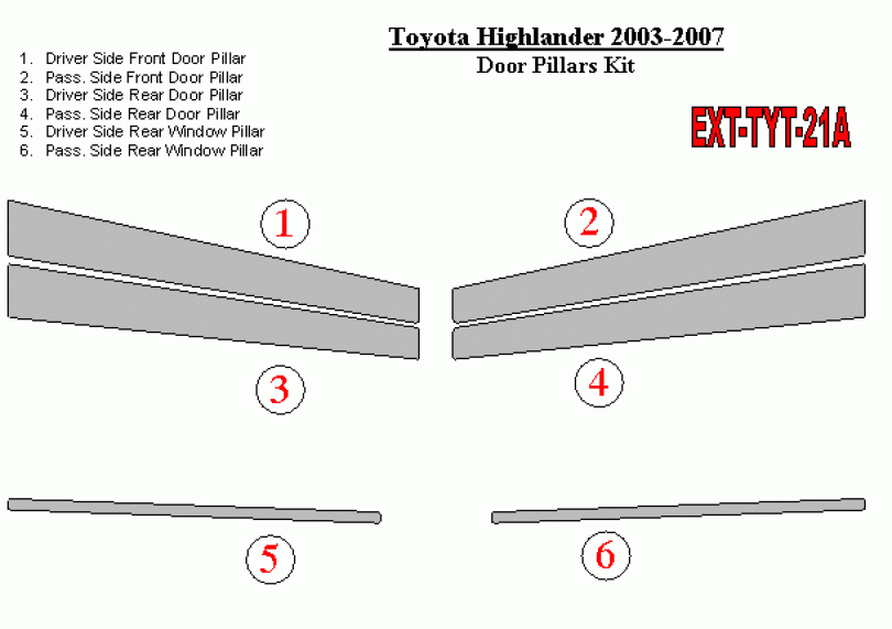 Toyota Highlander 2003-2007 Exterior Door Window Pillar Post Cover Trim