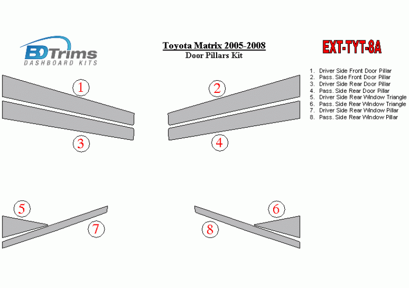 Toyota Matrix 2005-2008 Exterior Door Window Pillar Post Cover Trim