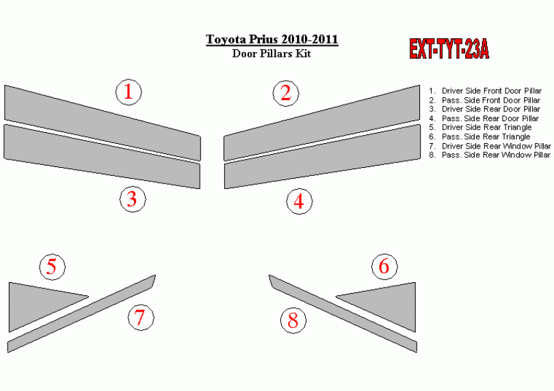 Toyota Prius 2010-2011 Exterior Door Window Pillar Post Cover Trim