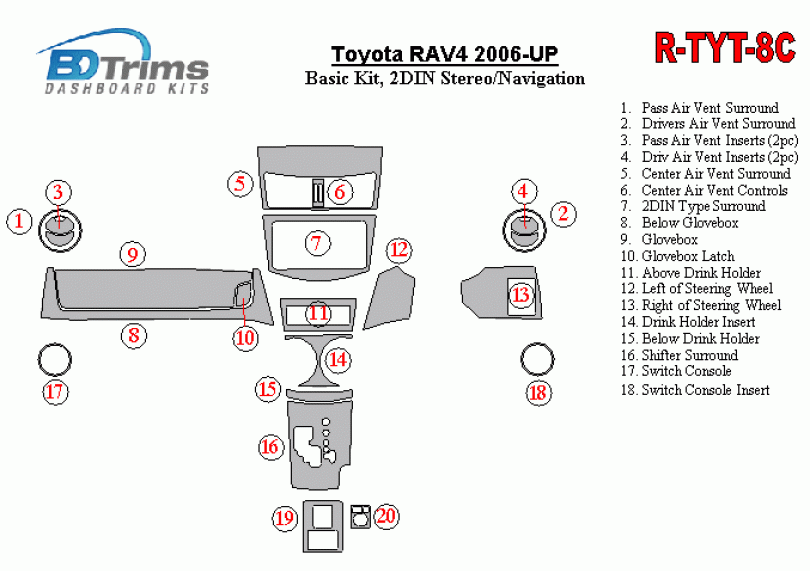 Toyota RAV-4 2006-UP Dash Trim Kit (RHD)