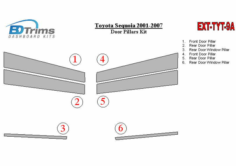 Toyota Sequoia 2001-2007 Exterior Door Window Pillar Post Cover Trim