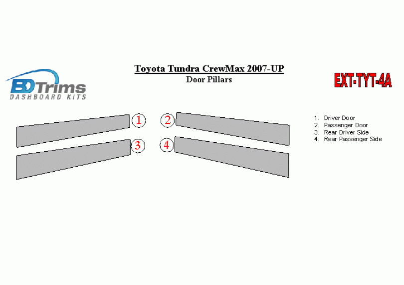 Toyota Tundra 2007-UP Exterior Door Window Pillar Post Cover Trim