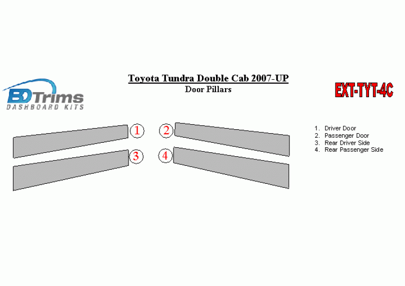 Toyota Tundra 2007-UP Exterior Door Window Pillar Post Cover Trim