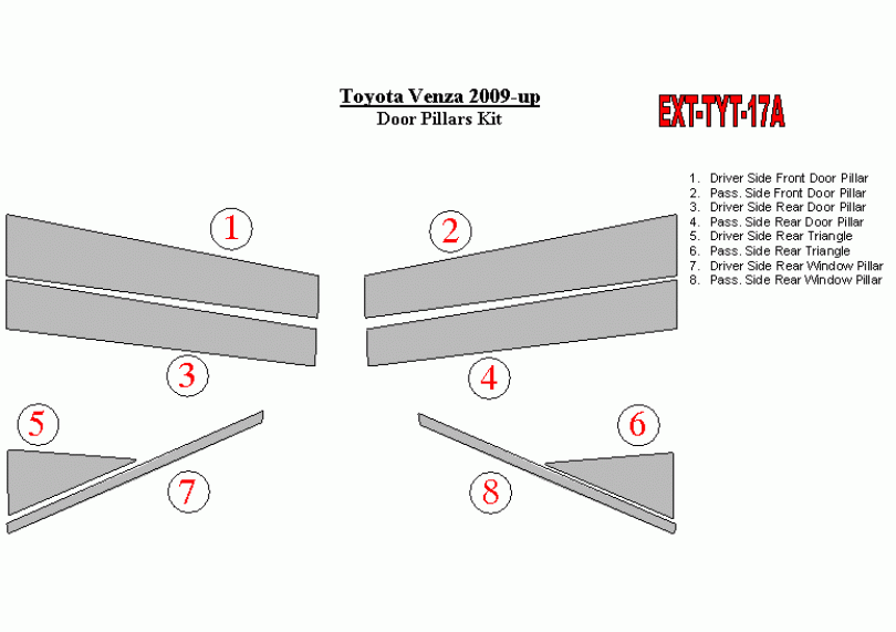 Toyota Venza 2009-UP Exterior Door Window Pillar Post Cover Trim