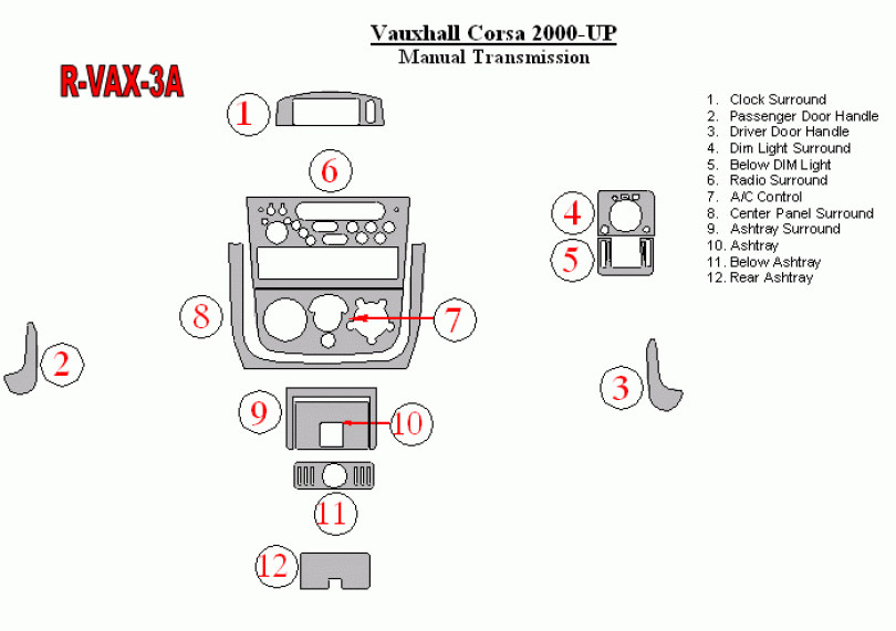 Vauxhall Corsa 2000-UP Dash Trim Kit (RHD)