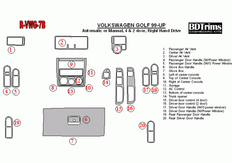 Volkswagen Golf 1999-UP Dash Trim Kit (RHD)