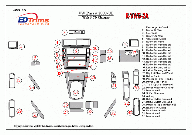 Volkswagen Passat 2000-UP Dash Trim Kit (RHD)