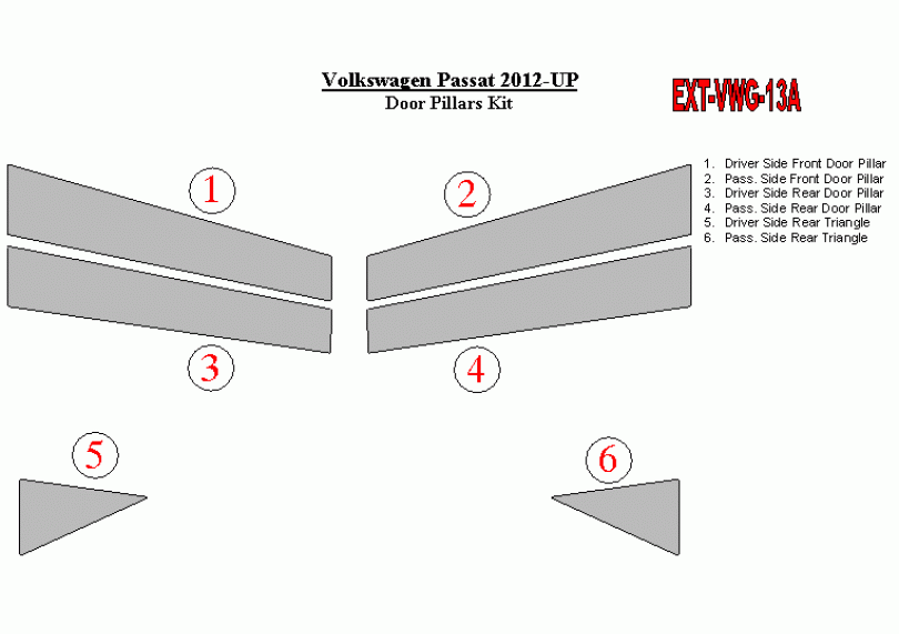Volkswagen Passat 2012-UP Exterior Door Window Pillar Post Cover Trim