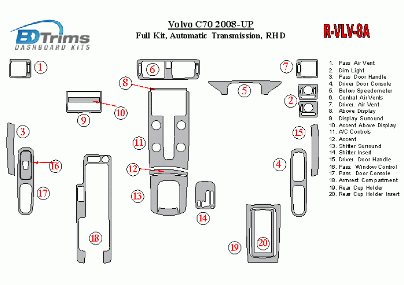 Volvo C70 2008-UP Dash Trim Kit (RHD)