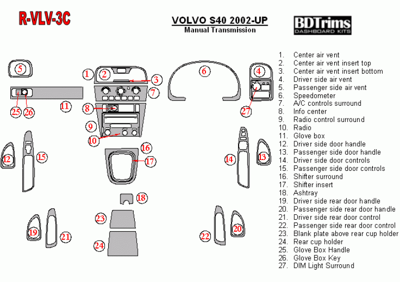 Volvo S40 2002-UP Dash Trim Kit (RHD)