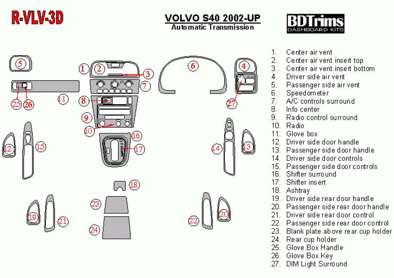 Volvo S40 2002-UP Dash Trim Kit (RHD)