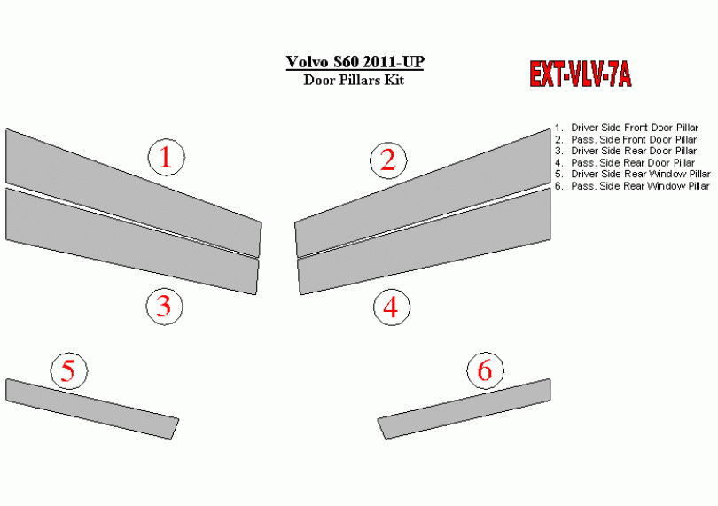 Volvo S60 2011-UP Exterior Door Window Pillar Post Cover Trim